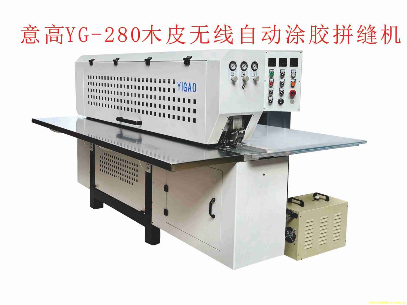 意高YG280的優點: 1,輸送帶采用不銹鋼材質,經久耐磨,確保長時間保持機器的精度。 2,入料裝置浮動設計的轉盤,能自動適應木皮厚薄公差,并且獨立變頻起動,使放料輕松,緊靠靠擋入料,并保持頭部對齊入料。 3,各電,氣配件均采用大品牌名廠優質配件。 4,自動涂膠YG280拼縫機,操作簡單,實用。首創柔性涂膠功能,它能大范圍地,自動適應木皮的切口應力變形,裁切精度變形,不平整木皮變型,從而解決自動布膠木皮要求高的行業難題,使自動拼縫效果得以保障,效果好省人工,更環保…。 專利設計,歡迎測試效果對比國內外同類產品。